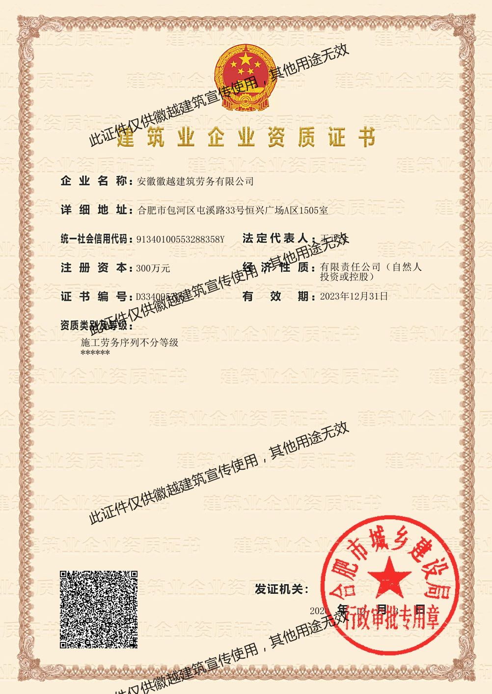 ·公司名稱:安徽徽越建筑勞務有限公司